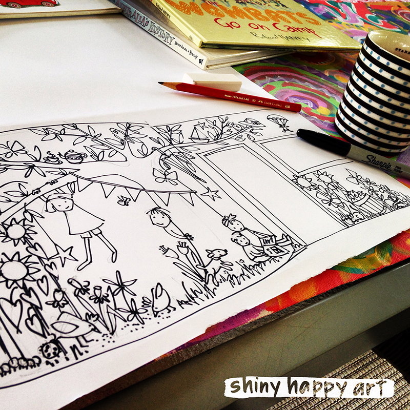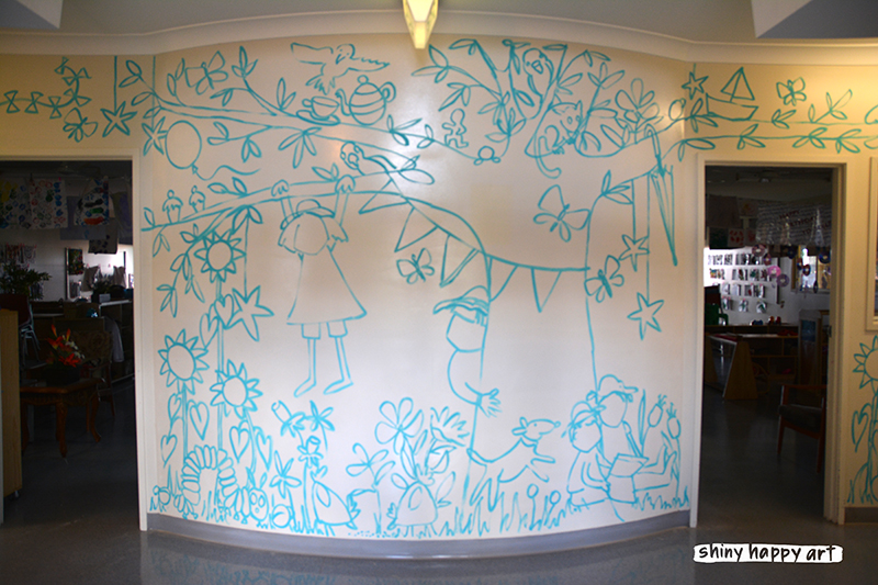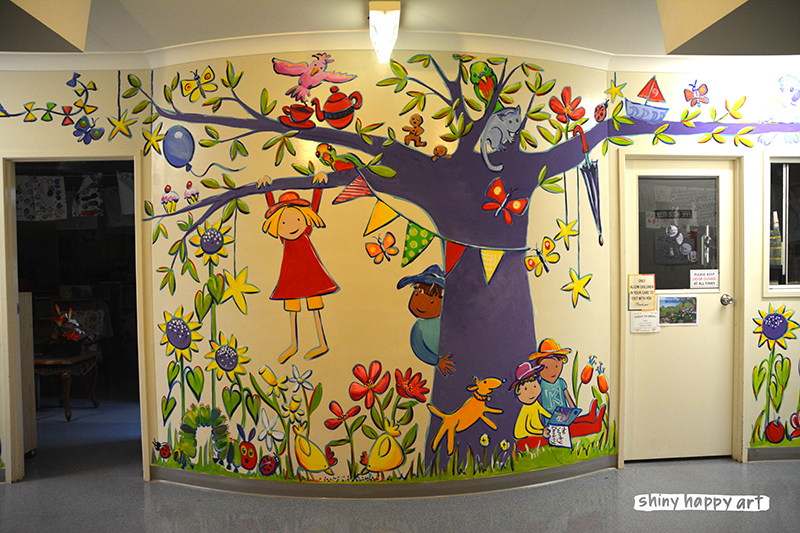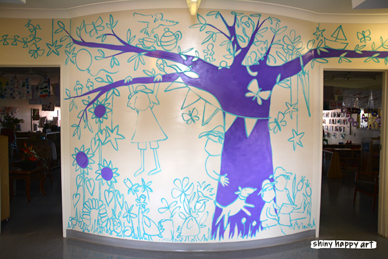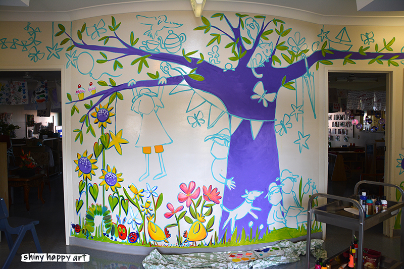 A couple of weekends ago I got to paint a mural (at Kate’s Place childcare centre, Middle Ridge) and documented the process – after 10 hours of painting I swear these old bones were creaking, but oh, what a wonderful way to spend the day!
