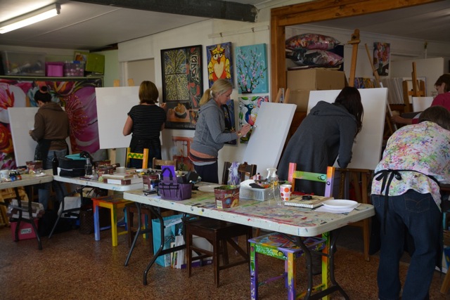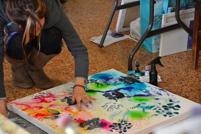 The ever delightful Tracy Verdugo came to town last weekend and left her mark on all the lucky participants in her Paint Mojo workshop, held in my Shiny Happy Art studio.